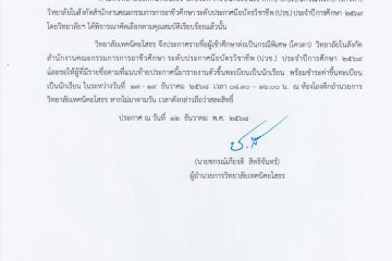 ประกาศวิทยาลัยเทคนิคยโสธร เรื่อง รายชื่อนักเรียนที่ผ่านการคัดเลือกเข้าศึกษาต่อเป็นกรณีพิเศษ (โควตา) ระดับปริญญาตรี ประจำปีการศึกษา 2569 12/12/2025 admin ประกาศ ดาวน์โหลดเอกสารที่นี่ Read more