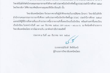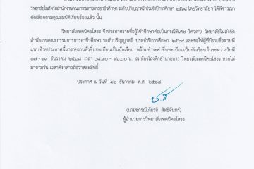 ประกาศวิทยาลัยเทคนิคยโสธร เรื่อง รายชื่อนักเรียนที่ผ่านการคัดเลือกเข้าศึกษาต่อเป็นกรณีพิเศษ (โควตา) ระดับประกาศนียบัตรวิชาชีพ (ปวช.) ประจำปีการศึกษา 2569 12/12/2025 admin ประกาศ ดาวน์โหลดเอกสารที่นี่ Read more