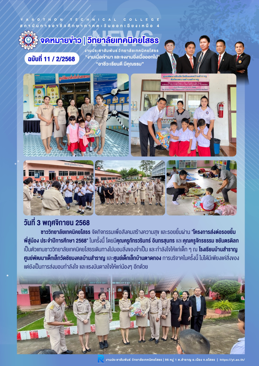 กิจกรรมเพื่อสังคมสร้างความสุข และรอยยิ้มผ่าน “โครงการส่งต่อรอยยิ้มพี่สู่น้อง ประจำปีการศึกษา 2568” 03/11/2025 admin กิจกรรม 1 2 ►