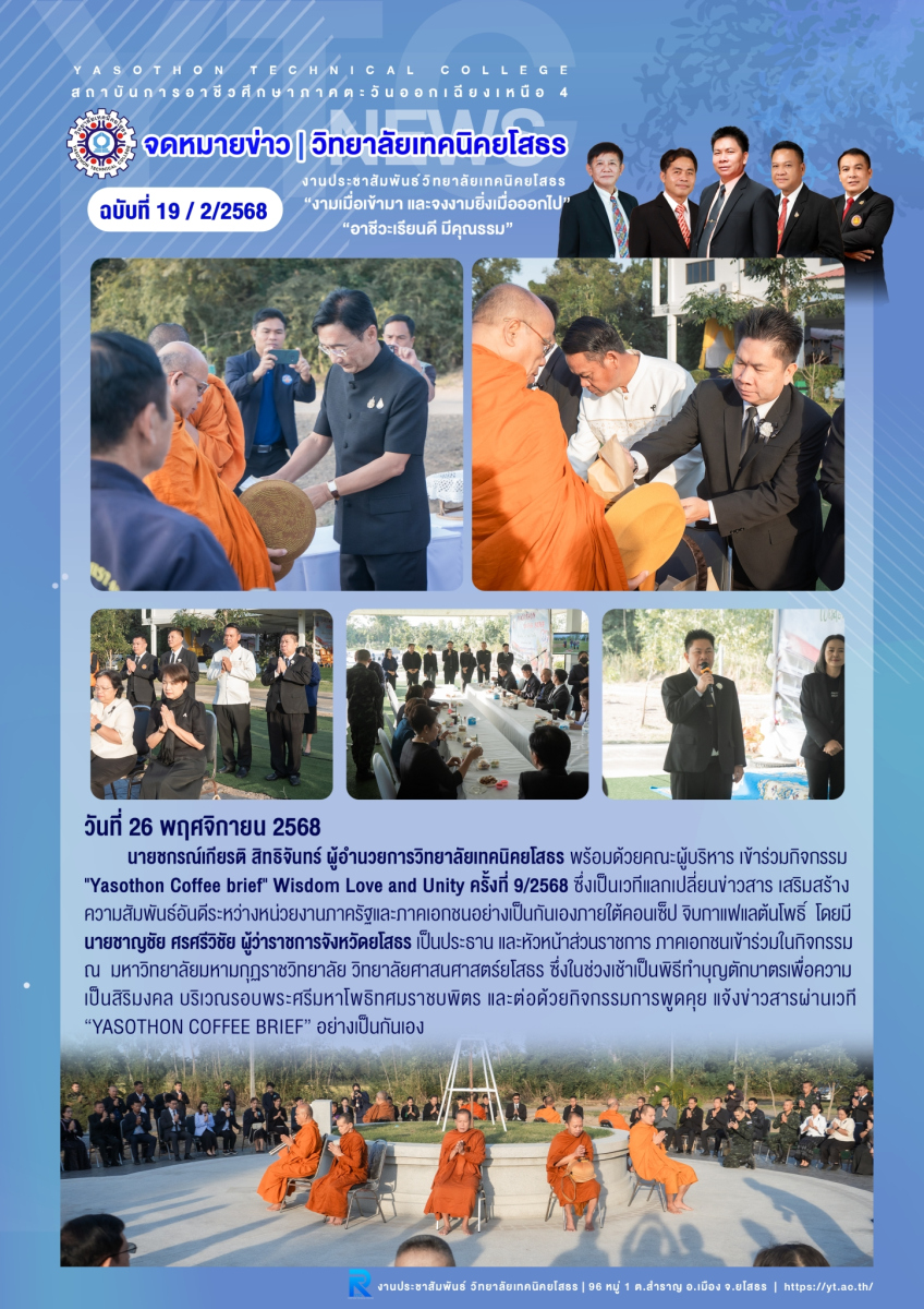 เข้าร่วมกิจกรรม “Yasothon Coffee brief” Wisdom Love and Unity ครั้งที่ 9/2568 26/11/2025 admin กิจกรรม 1 2 3 ►