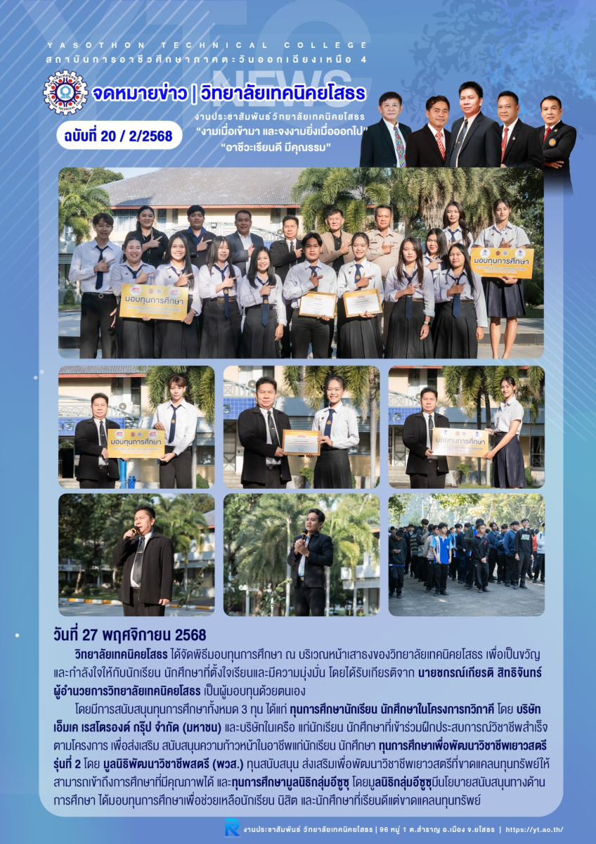 มอบทุนการศึกษา เพื่อเป็นขวัญและกำลังใจให้กับนักเรียน นักศึกษา ที่ตั้งใจเรียนและมีความมุ่งมั่น 27/11/2025 admin กิจกรรม 1 2 ►
