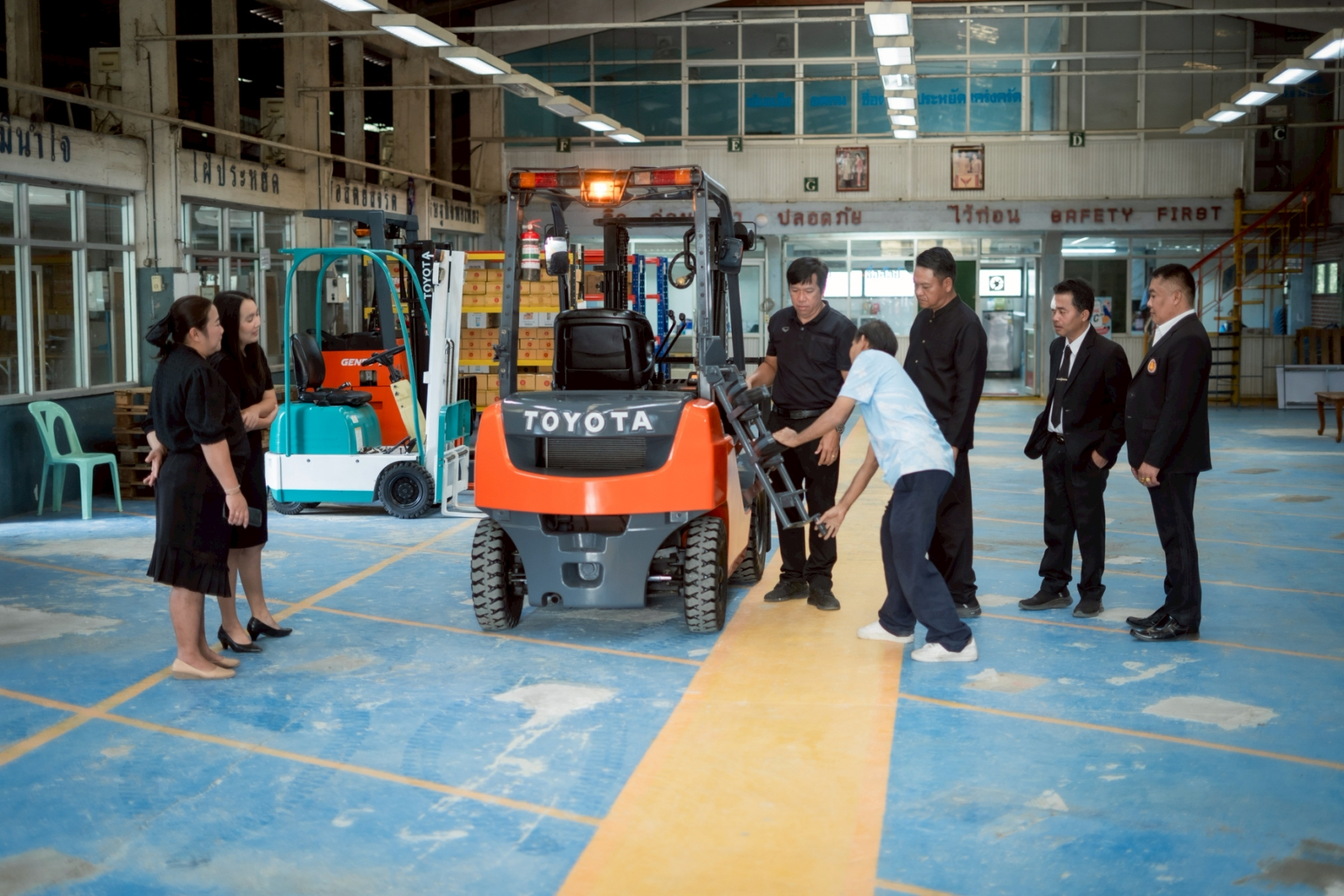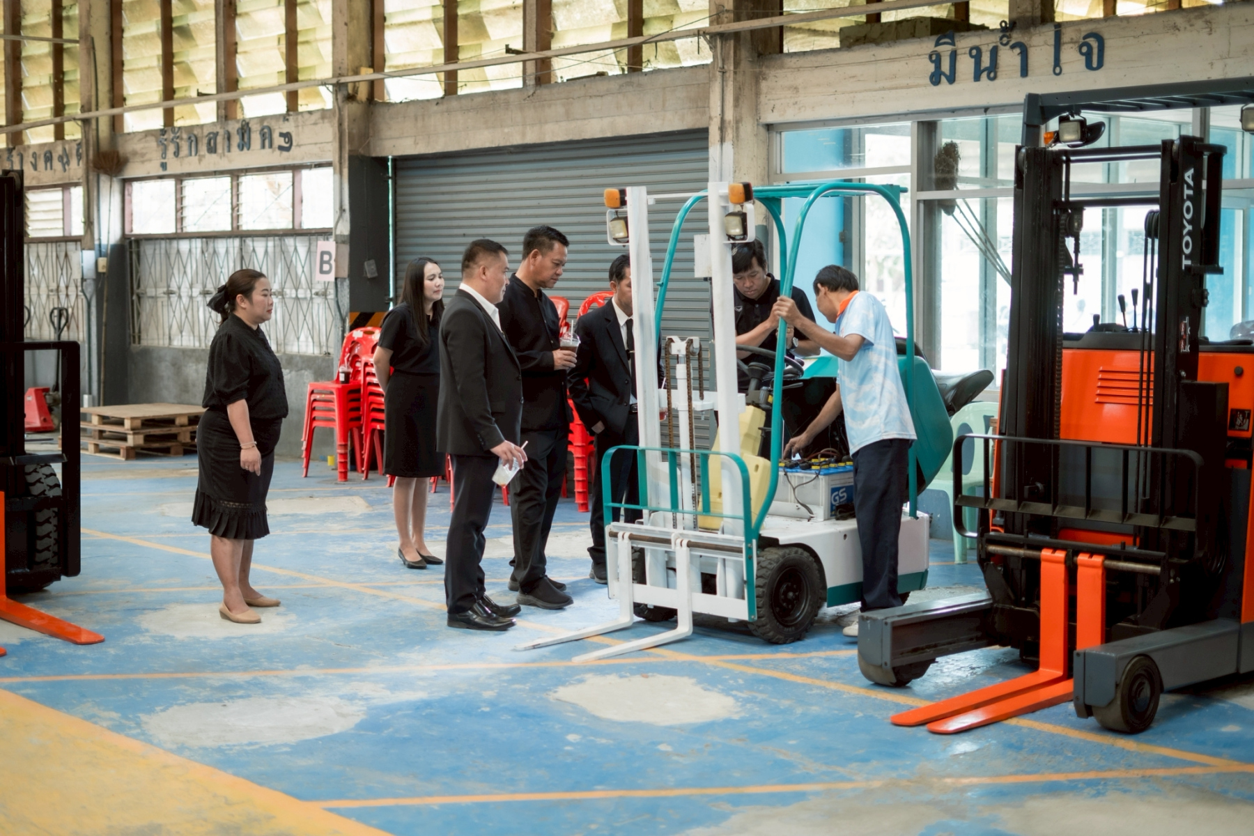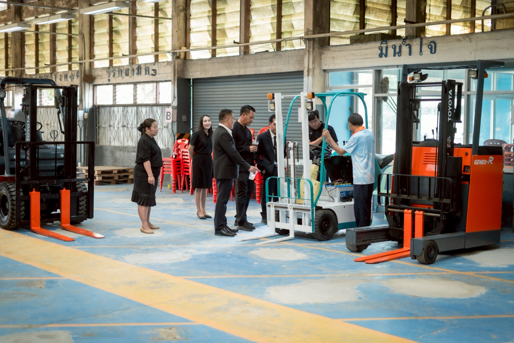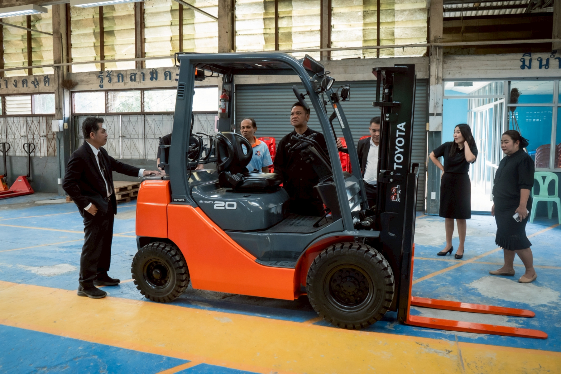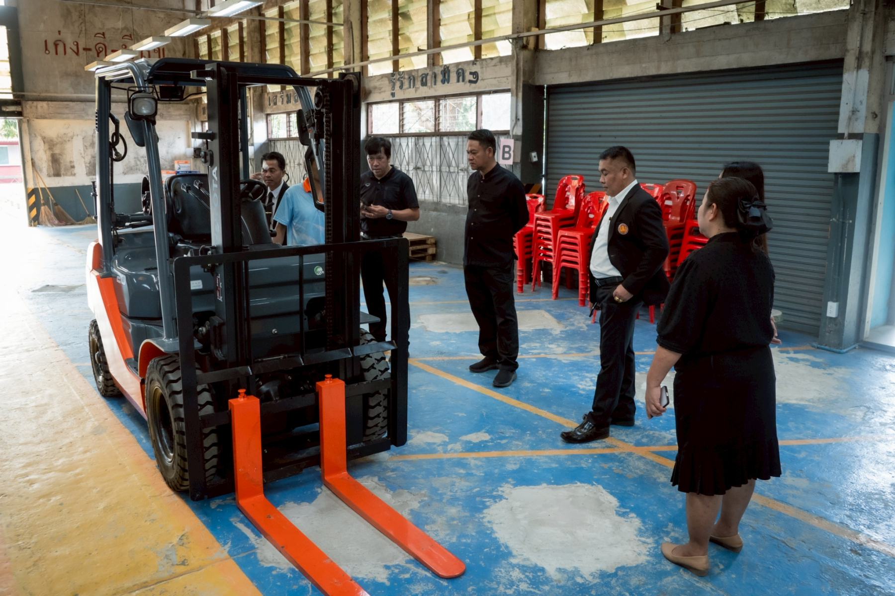 รับมอบรถโฟร์คลิฟท์ จากตัวแทนของนายบุญโฮม วงค์ศรี กรรมการผู้จัดการ บริษัท วรรณวัฒน์ ฟอร์คลิฟท์ จำกัด และนายธงชัย ทีคะภัทรโภคิน กรรมการผู้จัดการ บริษัท เอยูเอ็น แอนด์ ดี จำกัด