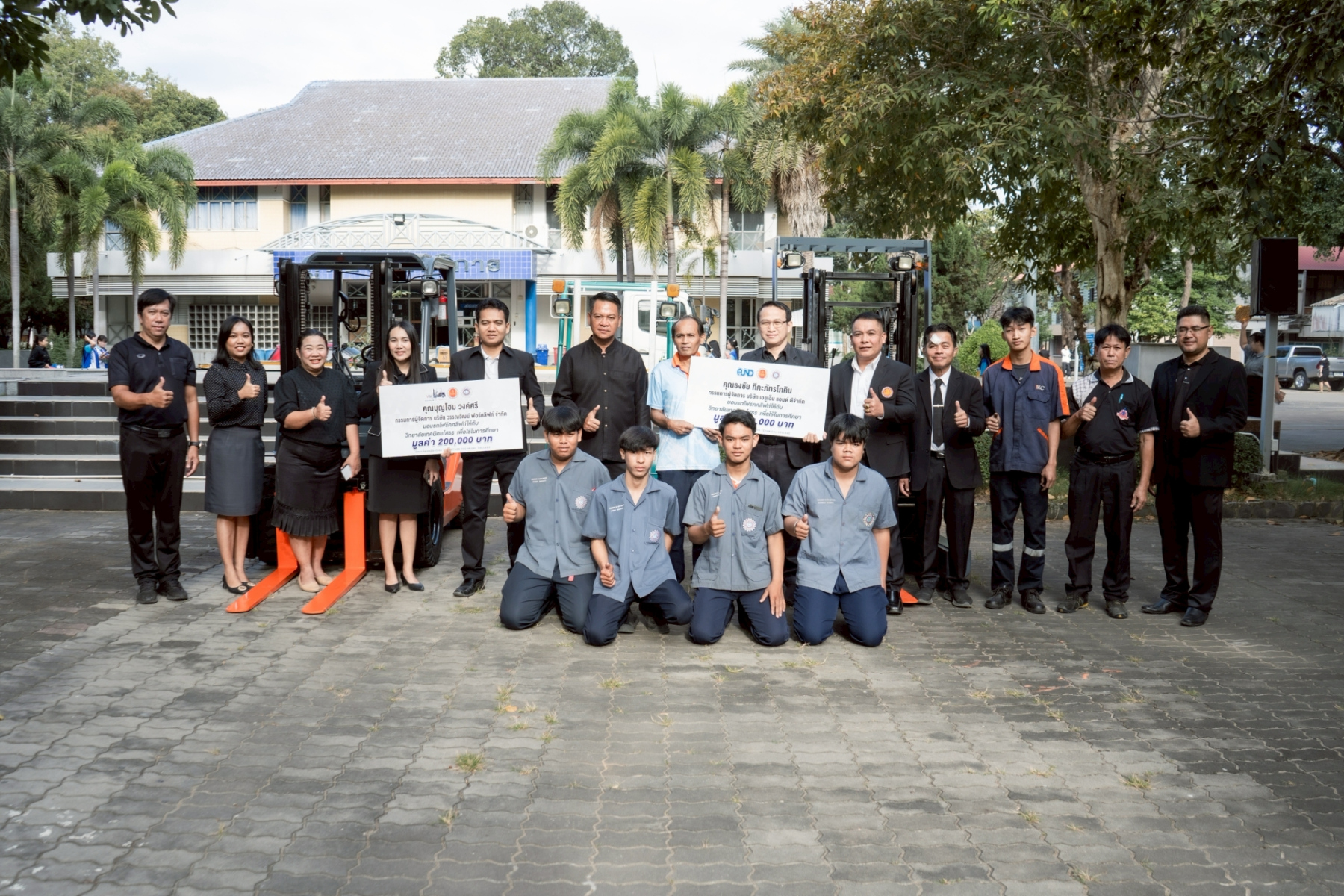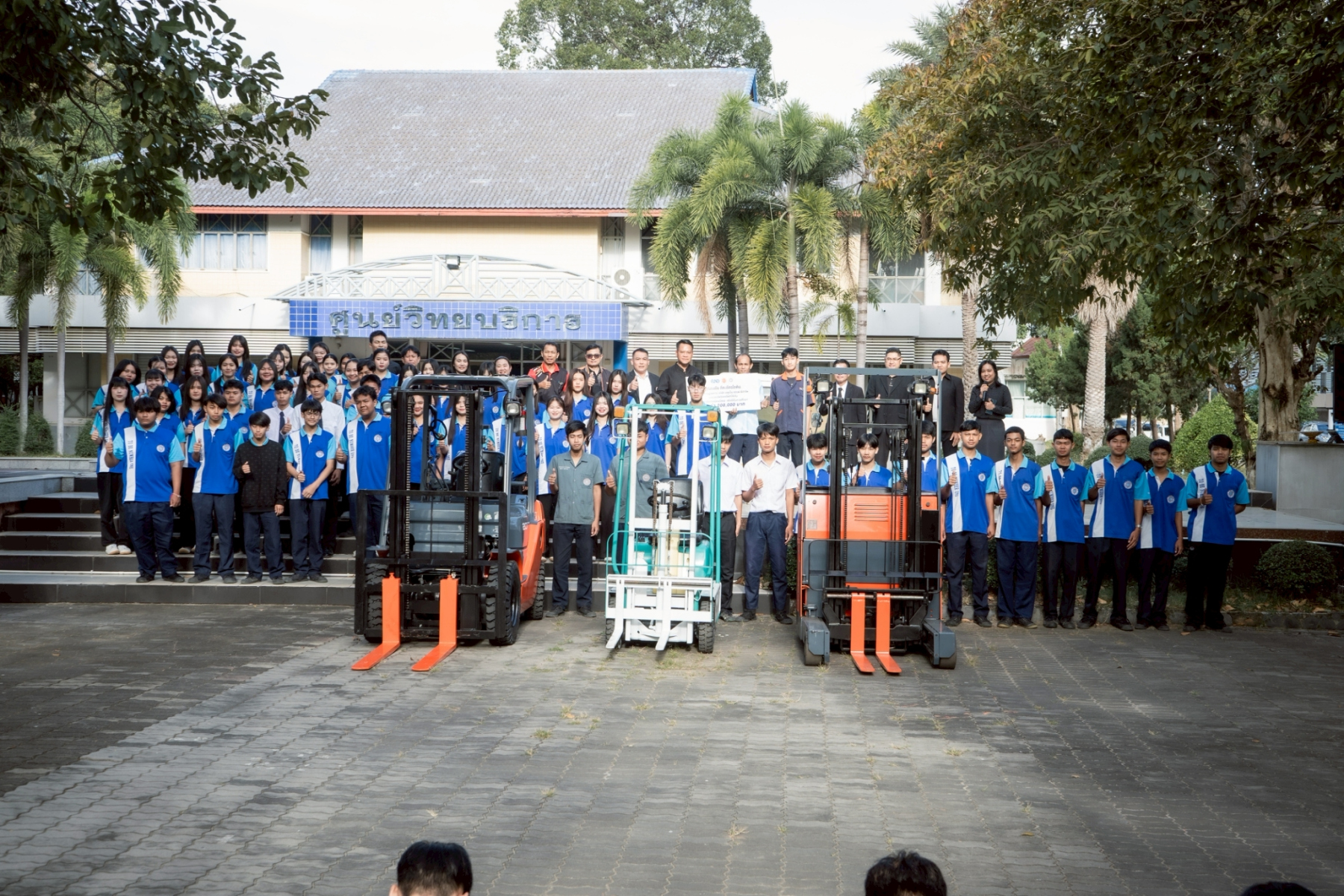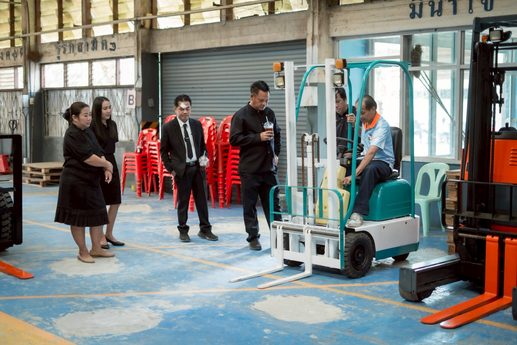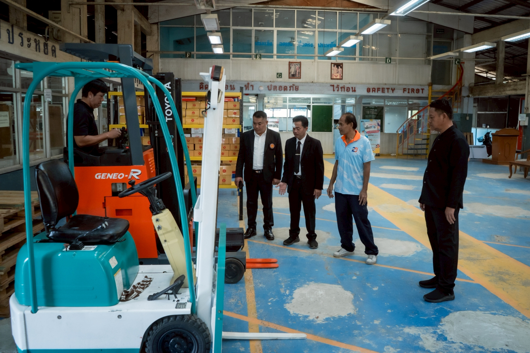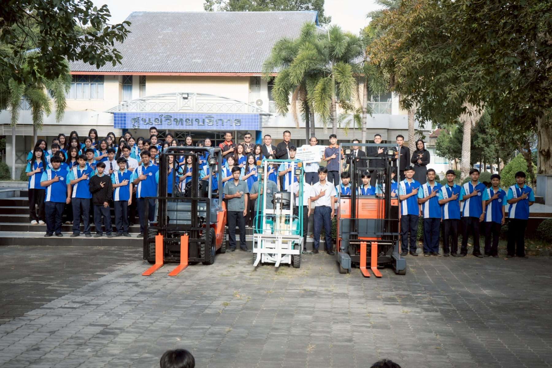 รับมอบรถโฟร์คลิฟท์ จากตัวแทนของนายบุญโฮม วงค์ศรี กรรมการผู้จัดการ บริษัท วรรณวัฒน์ ฟอร์คลิฟท์ จำกัด และนายธงชัย ทีคะภัทรโภคิน กรรมการผู้จัดการ บริษัท เอยูเอ็น แอนด์ ดี จำกัด