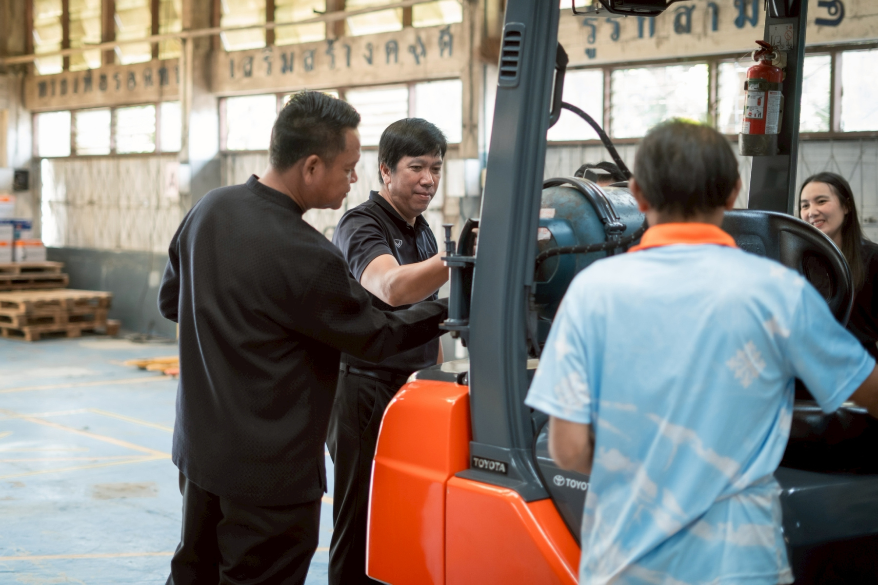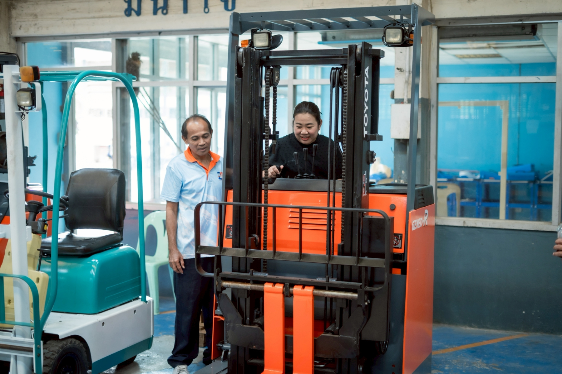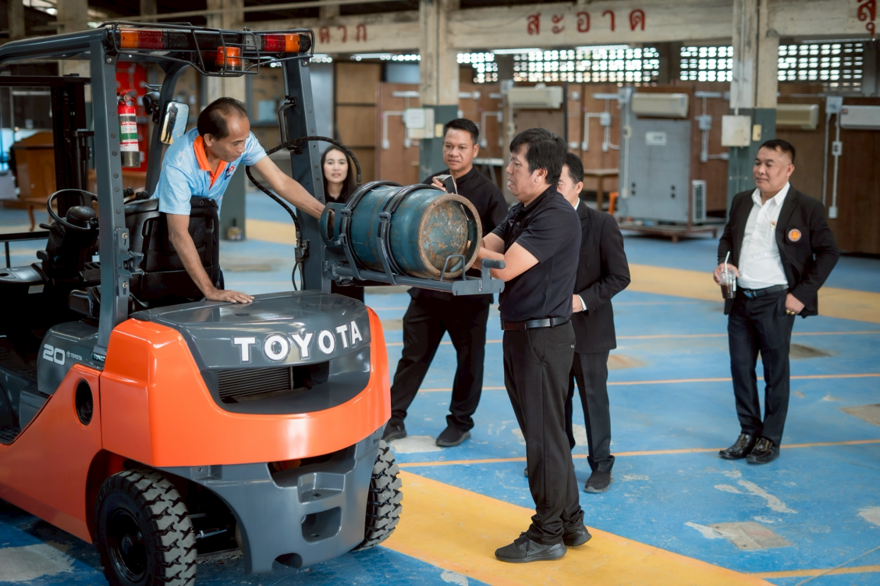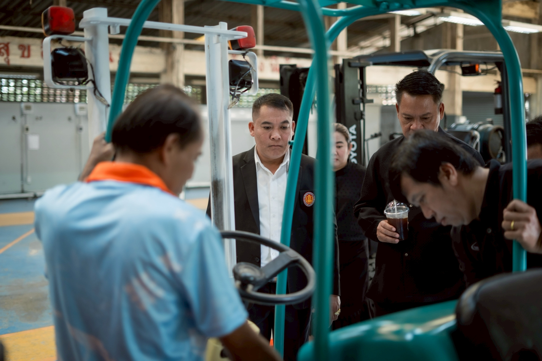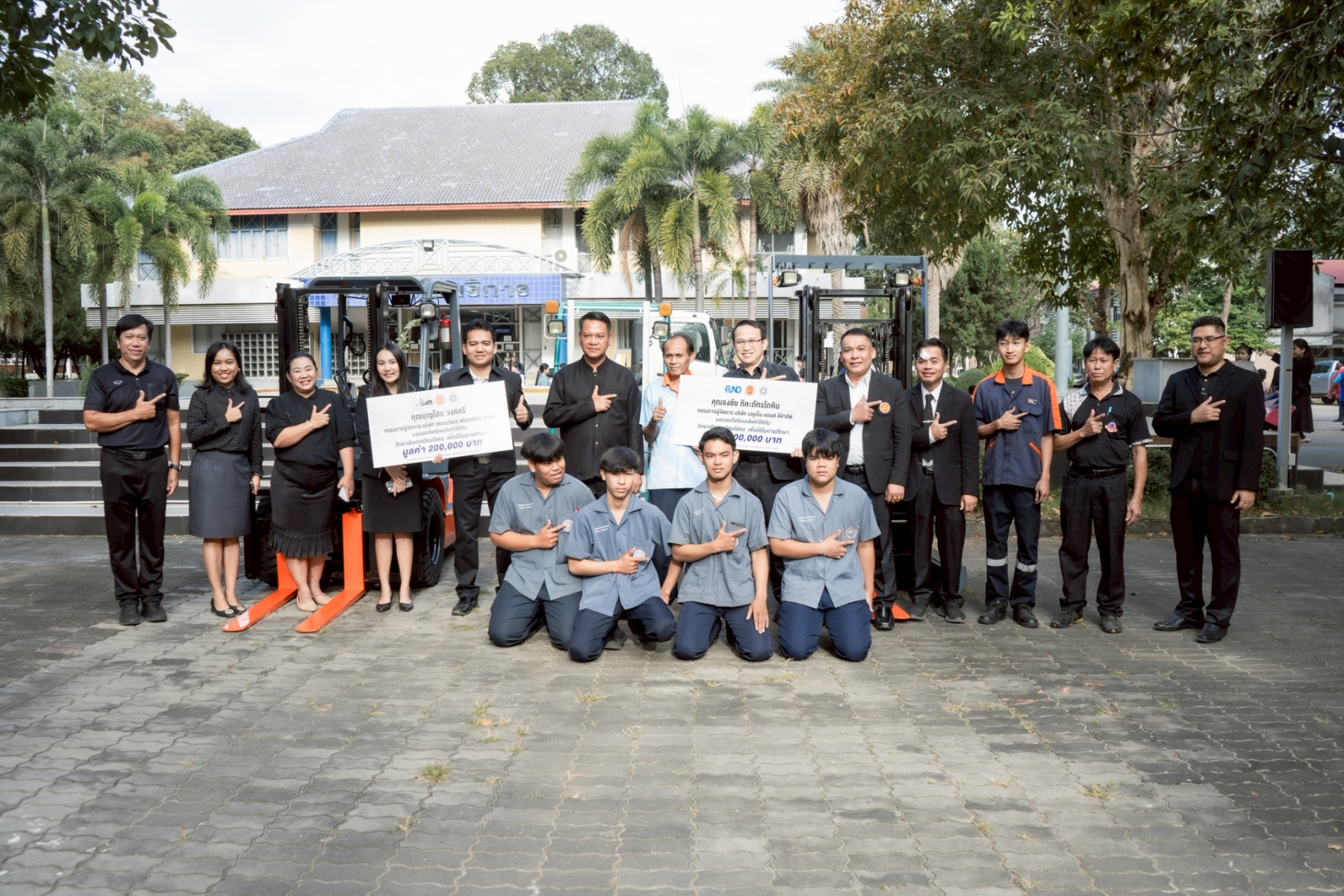 รับมอบรถโฟร์คลิฟท์ จากตัวแทนของนายบุญโฮม วงค์ศรี กรรมการผู้จัดการ บริษัท วรรณวัฒน์ ฟอร์คลิฟท์ จำกัด และนายธงชัย ทีคะภัทรโภคิน กรรมการผู้จัดการ บริษัท เอยูเอ็น แอนด์ ดี จำกัด