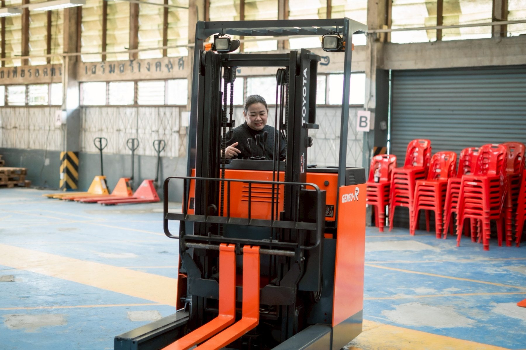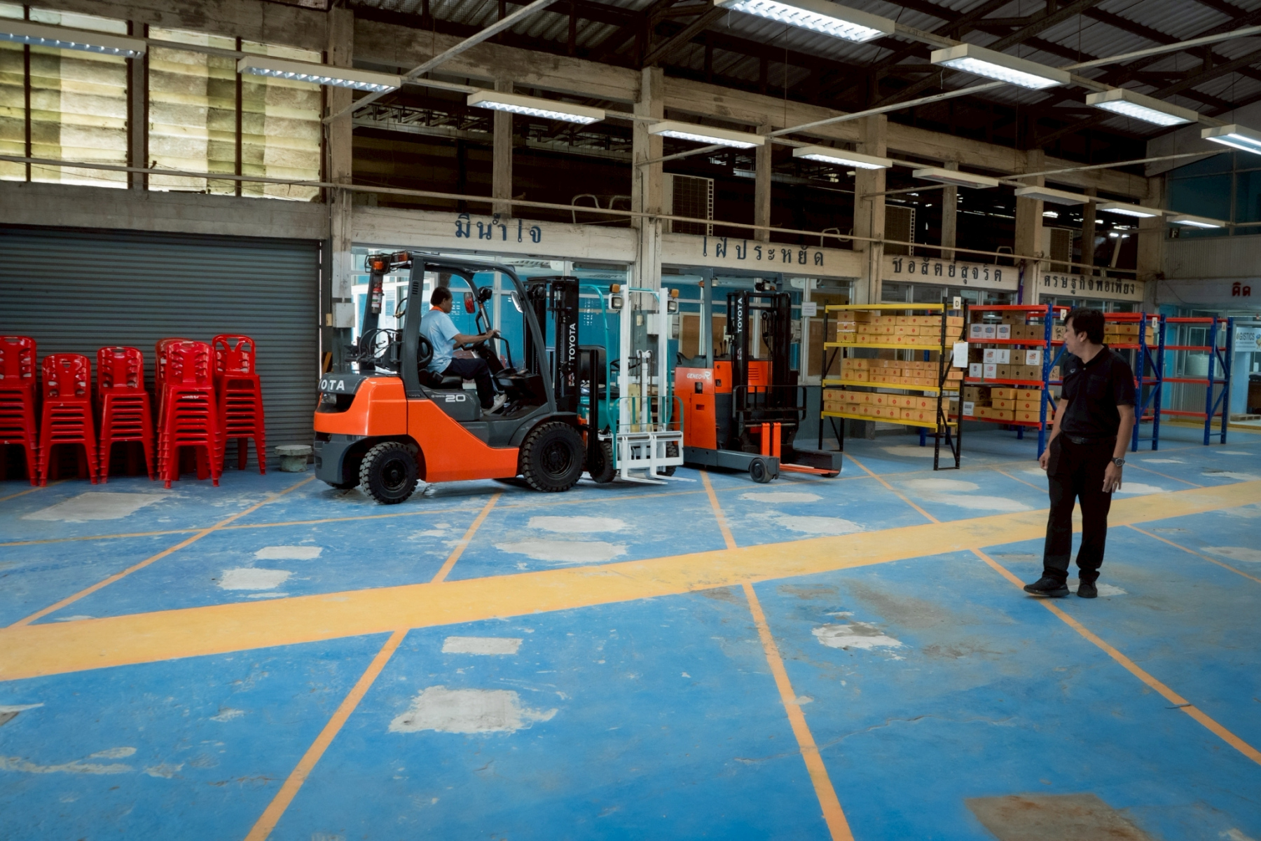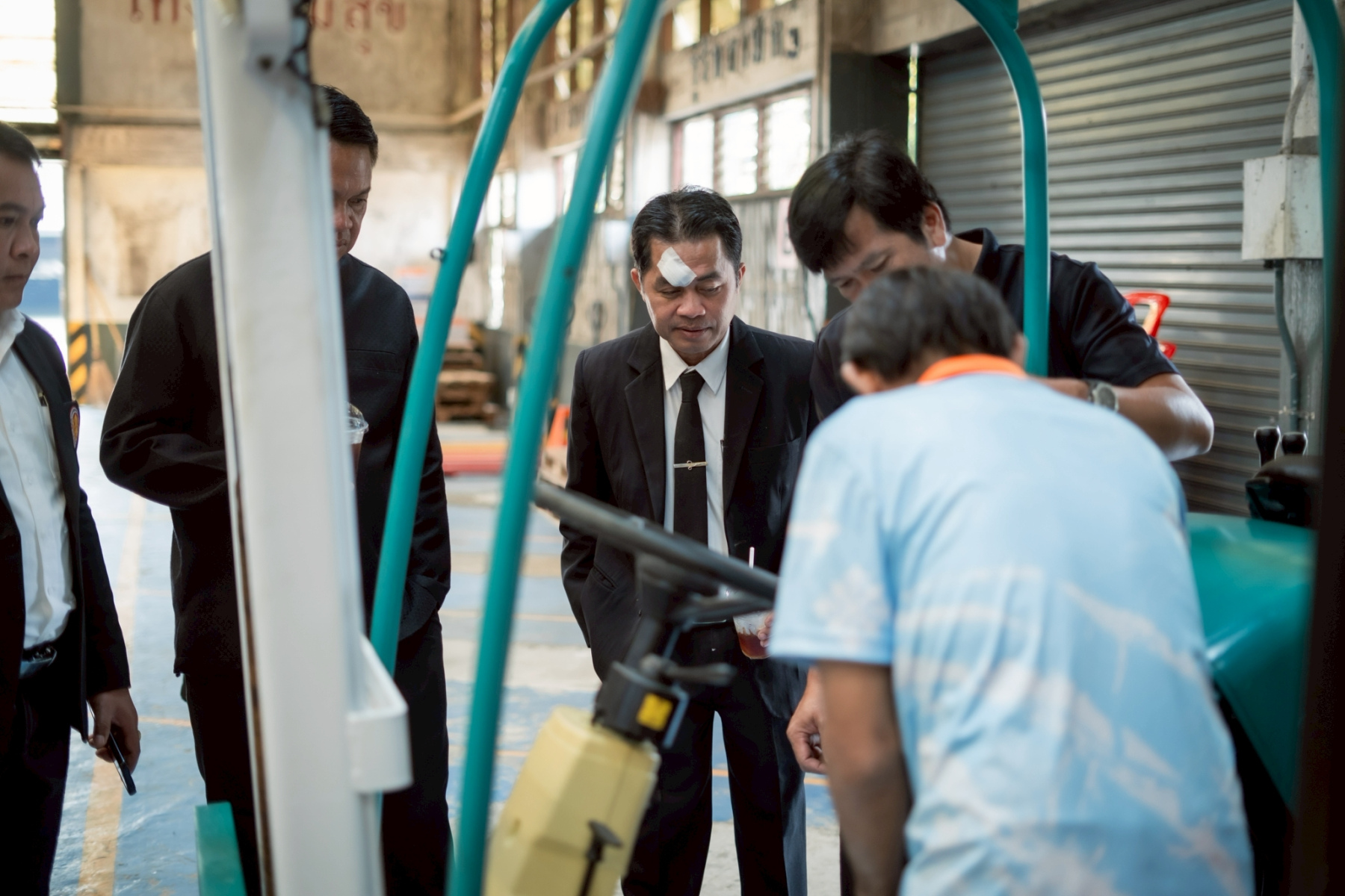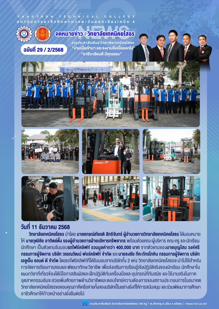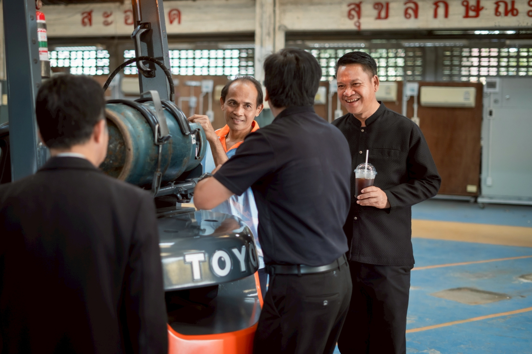 รับมอบรถโฟร์คลิฟท์ จากตัวแทนของนายบุญโฮม วงค์ศรี กรรมการผู้จัดการ บริษัท วรรณวัฒน์ ฟอร์คลิฟท์ จำกัด และนายธงชัย ทีคะภัทรโภคิน กรรมการผู้จัดการ บริษัท เอยูเอ็น แอนด์ ดี จำกัด