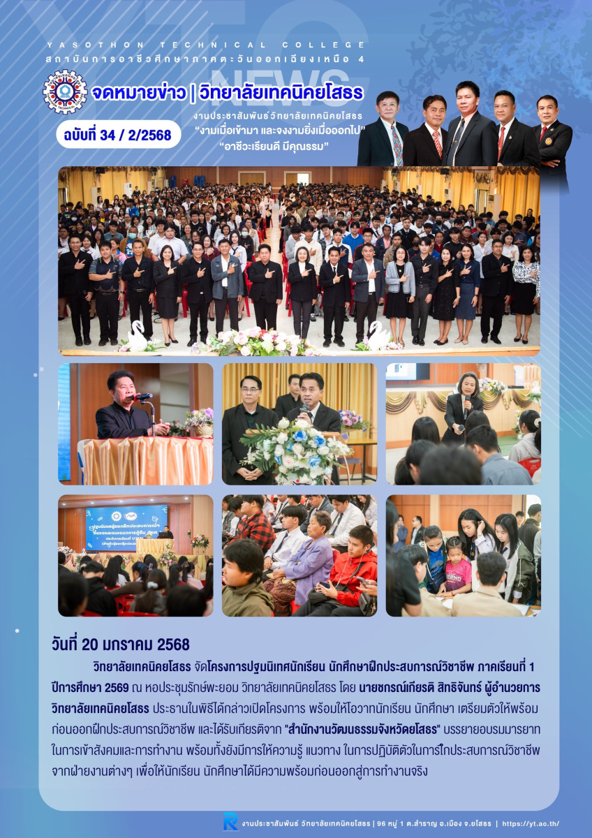 โครงการปฐมนิเทศนักเรียน นักศึกษาฝึกประสบการณ์วิชาชีพ ภาคเรียนที่ 1 ปีการศึกษา 2569 20/01/2026 admin กิจกรรม 1 2 ... 5 ►