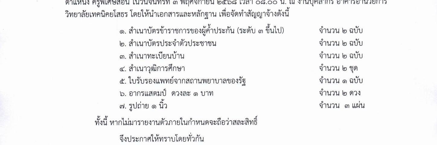 ประกาศวิทยาลัยเทคนิคยโสธร เรื่อง ประกาศรายชื่อผู้ผ่านการสอบคัดเลือกบุคคลเพื่อจัดจ้างเป็นลูกจ้างชั่วคราว ตำแหน่ง ครูพิเศษสอน 29/10/2025 admin ประกาศ ดาวน์โหลดเอกสารที่นี่